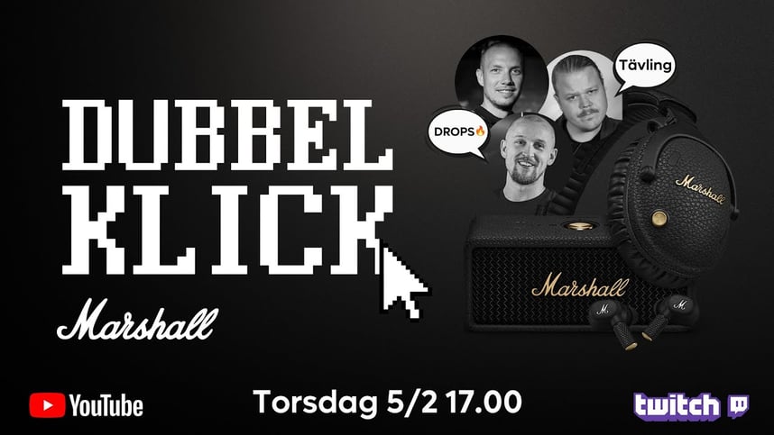 Om du har några frågor om Marshall får du gärna passa på att ställa dem under streamen. Vi kommer att streama på både Twitch och YouTube från kl. 17:00 nu på torsdag 5 februari. Är du inte redan medlem i vår Discord-kanal vill vi också passa på att välkomna dig till den också. Där hittar du gött tugg om Inet, teknik och livet i allmänhet. Hoppas vi ses där och på streamen nu på torsdag.