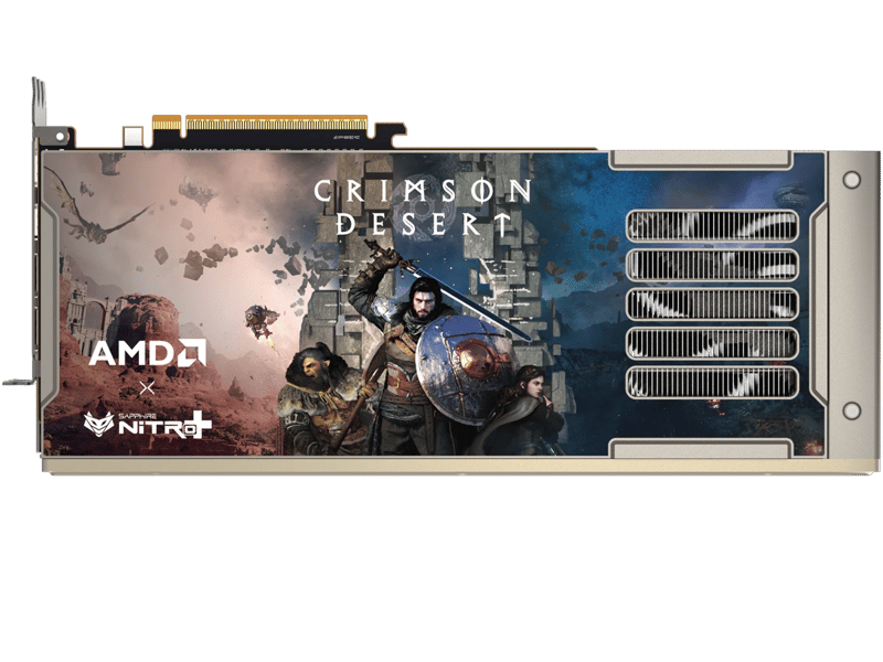För att ladda upp inför releasen av det kommande storspelet Crimson Desert släpper Sapphire nu en begränsad utgåva av deras påkostade grafikkort Radeon RX 9070 XT 16GB Nitro+. Det här är i grund och botten samma grafikkort som deras vanliga Nitro+, men med annan utsmyckning på fläktarna och annat motiv på baksidan. Spelet ingår just nu till utvalda AMD-produkter, däribland det här grafikkortet.