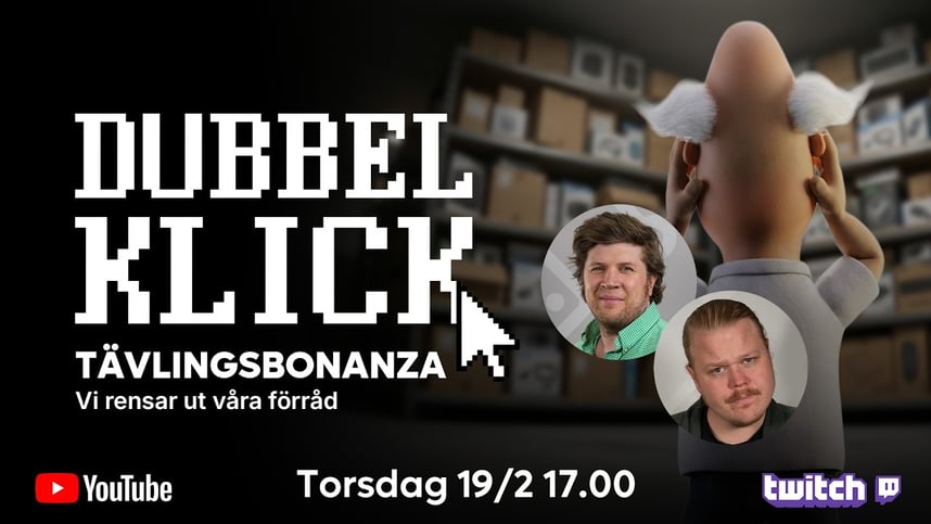 Många av prylarna vi hittat i våra vrår är fullt fungerande produkter som förtjänar nya hem, så för att slå två flugor i en smäll blir det tävlingsbonanza under nästa Dubbelklick. Då kommer Backe och Max att bjuda på god stämning, gött tjat och en rejäl mängd tävlingsvinster.