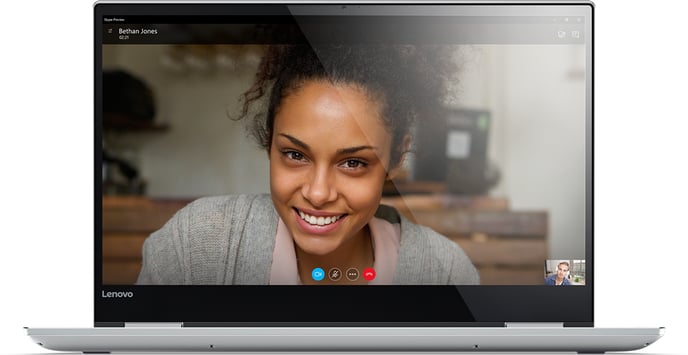 Yoga 720 är utrustad med en Thunderbolt™ 3 USB-C-port – den revolutionerande anslutningstekniken som ger stöd för högupplösta bildskärmar, högpresterande dataenheter och snabb laddning. Anslut datorn till flera bildskärmar* och synkronisera och säkerhetskopiera med hastigheter upp till 40 Gbit/s – åtta gånger snabbare än med USB 3.0! Nu kan du spela in och redigera flera videoströmmar i realtid eller kedjekoppla andra enheter för att förenkla arbetet.
