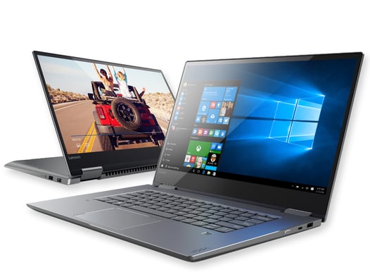 Yoga 720 i Järngrått är bara 19,9 mm tunn och har ett hölje i aluminium av hög kvalitet. Det väl beprövade 360-gradersgångjärnet gör det enkelt att växla från bärbar dator till pekplatta och tillbaka. Denna tuffa iF Design Award-belönta konvertibla enhet anpassar sig till varje situation – från kundmötet till slösurfandet – och med upp till tio timmars batteritid kan du hålla på så länge du behöver.