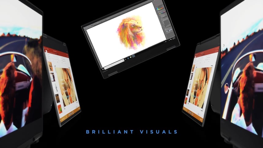 Yoga 720 levererar överlägsen grafik tack vare ett toppmodernt separat NVIDIA GTX1050-grafikkort som är betydligt snabbare och mer energieffektivt än tidigare generationers kort. Yoga 720 är en av få konvertibla enheter på marknaden med grafikprestanda på den här nivån och är verkligen i en klass för sig. Visa flera videor samtidigt, spela avancerade spel, redigera foton – eller gör alltihop på samma gång. Du missar aldrig ett ögonblick.