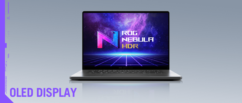 Äntligen kan bärbara spelare njuta av de ultrasnabba svarstiderna och otroliga kontrastförhållandena som endast är möjliga med OLED-teknik. Denna ROG Nebula HDR-skärm har en upplösning på 2,5K med en maximal ljusstyrka på 1100 nits*, vilket ger den en otrolig pixeltäthet och HDR-kapacitet för en 16-tums skärm. En uppdateringsfrekvens på 240 Hz och G-SYNC gör att alla dina spel ser silkeslena ut. Med 100 % täckning av DCI-P3-färgrymden, färgnoggrannhet med en ΔE på mindre än 1 och VESA DisplayHDR True Black 1000-certifiering kan du förbereda dig på att fördjupa dig i HDR-innehåll som är så verklighetstroget att skärmen smälter bort.
