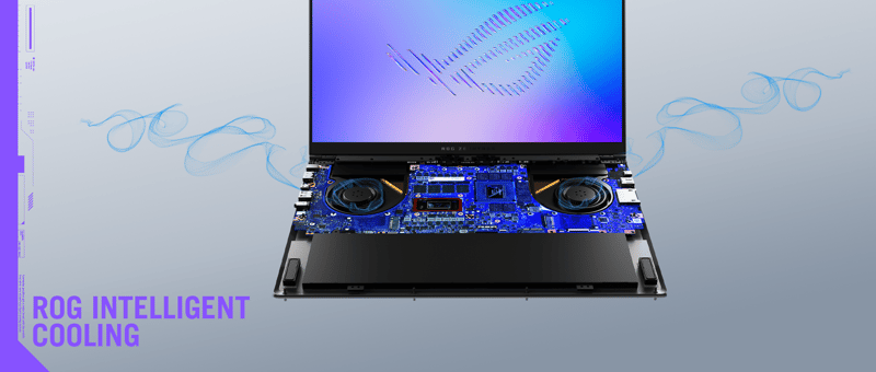 ROG Intelligent Cooling är en serie komponenter som samverkar för att hålla våra högpresterande bärbara datorer svala och tysta. Zephyrus G16:s Tri-Fan-teknik, termisk komponent av flytande metall och ett högeffektivt utblås för luft fungerar i perfekt harmoni för att erbjuda den perfekta balansen mellan värme och akustik. Tillsammans håller dessa system maskinen i toppform samtidigt som den är tystare än någonsin.