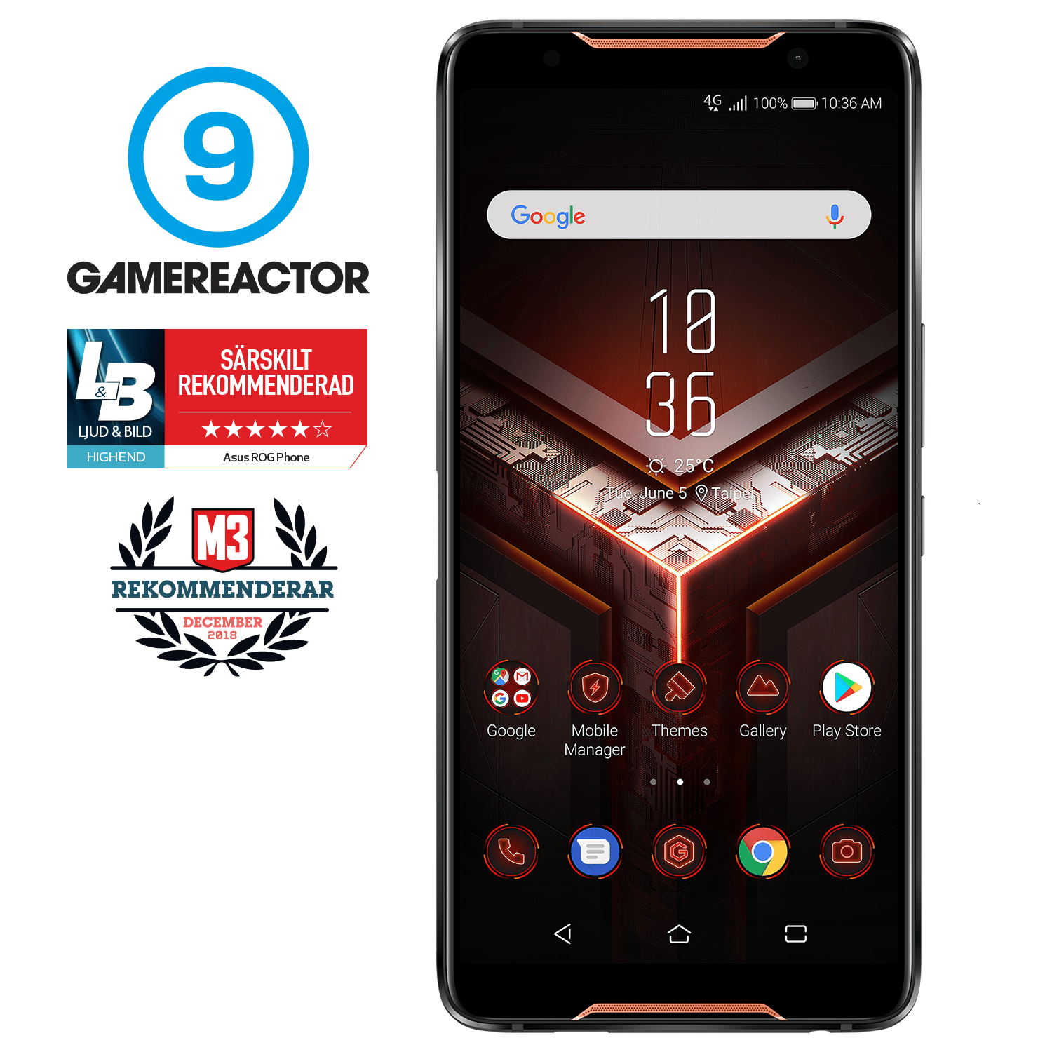 "Asus ROG Phone är en lyckad variant av en smartmobil med särskilt fokus på spel. Prestanda är det bästa man kan få från Android just nu, och även om man kan hitta lika snabba telefoner till lägre pris så uppvägs det högre priset av den läckra 90 Hz AMOLED-skärmen."