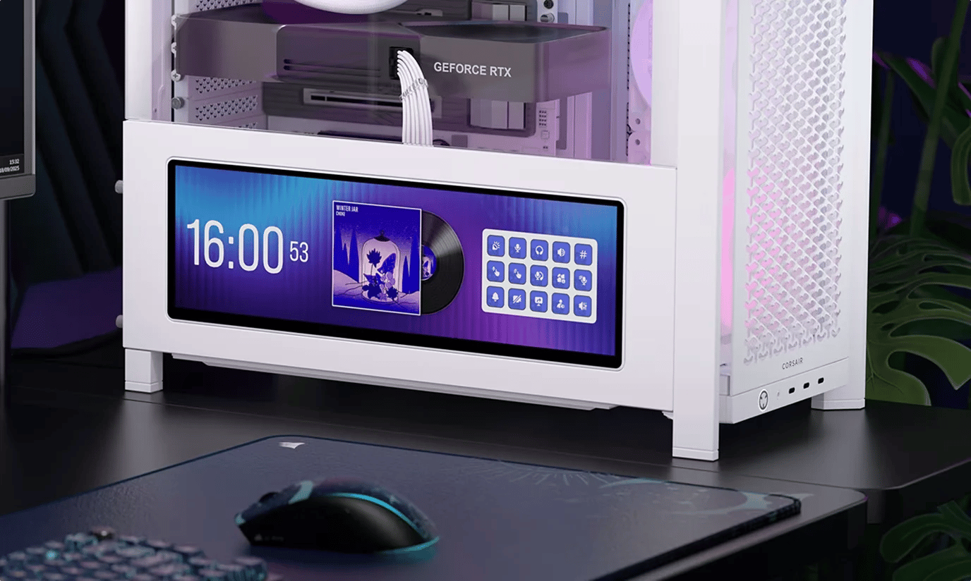 Via HDMI eller USB-C DP Alt Mode fungerar den som extra bildskärm i Windows. Fem punkters multitouch, magnetisk montering och stöd för iCUE gör den idealisk för systemstatistik, widgets, chatt och Stream Deck-genvägar.