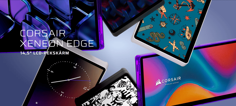 CORSAIR XENEON EDGE 14,5″ är en ultrabred 14,5-tums LCD-pekskärm med upplösningen 2560 × 720 och 60 Hz, designad som sekundär display för chassi, skrivbord eller streamingrigg.
