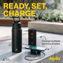 Den avtagbara powerbanken på 5000 mAh kan användas både när den sitter fast på flaskan eller separat. Powerbanken stödjer laddning via både USB‑A och USB‑C, samt trådlös laddning upp till 15 W. Den kan till och med ladda två enheter samtidigt.