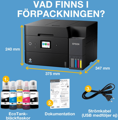 Epson EcoTank ET-4950 är en A4-bläckstråleskrivare utvecklad för användare som skriver ut mycket och vill ha full kontroll över sina utskriftskostnader. Till skillnad från traditionella skrivare med patroner använder den Epsons EcoTank-system med integrerade bläckbehållare som fylls på med flaskor. Det ger en extremt låg kostnad per sida och minimerar avbrott i vardagen, både i hemmakontor och mindre företag.