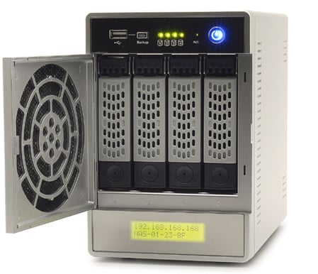 Via front- och bakmonterade USB-portarna kan du ansluta extra USB-diskar, USB-minnen m.m för att utöka kapaciteten, alternativt koppla in skrivare för att dela ut på nätverket.