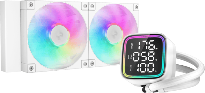 Med DeepCool LD Digital får du alltid full koll på din CPU status och den kommer också med vacker A-RGB både runt kanten av pumpblocket och på fläktarna.