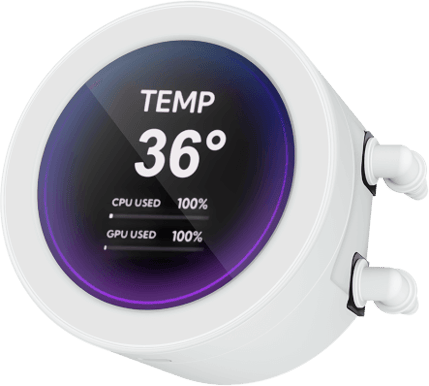 Den avtagbara LCD-skärmen på vattenblocket är fullt anpassningsbar och styrs enkelt via SAMA Monitor-programvaran, vilket ger dig total kontroll över temperaturer och estetik.