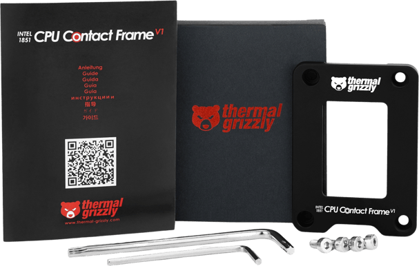 Thermal Grizzly Contact Frame är helt tillverkad i Tyskland och är ett monteringshjälpmedel som ersätter moderkortets ursprungliga Integrated Loading Mechanism (ILM) för att möjliggöra en högre kylningsprestanda hos CPU-kylare genom ett optimerat kontakt.