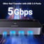 USB 3.0 ger överföringshastigheter upp till 5 Gbps, vilket är avsevärt snabbare än USB 2.0 (480 Mbps). Det möjliggör effektiv filöverföring av stora dokument, bilder och videofiler utan flaskhalsar.