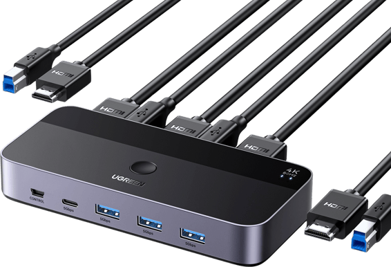 UGREEN 15707 USB 3.0 KVM Switch 4K@60Hz är ett genomtänkt val för dig som vill effektivisera arbetsflödet och dela skärm och USB-enheter mellan två system med bibehållen bildkvalitet och öve