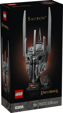 LEGO Icons Sagan om ringen: Saurons hjälm (11373) är en modellbyggsats framtagen för vuxna fans av Tolkiens värld och den klassiska filmtrilogin. Setet fokuserar på att återskapa Saurons hjälm med ett mörkt, hotfullt formspråk som tydligt speglar karaktärens roll i berättelsen. Med 538 delar erbjuder modellen en koncentrerad och detaljerad byggprocess anpassad för utställning snarare än lek.