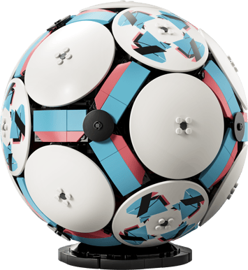 För att uppnå den rundade formen används LEGO Technic-komponenter som bygger upp en stabil inre struktur. Detta ger bollen ett realistiskt uttryck och en jämn geometri som skiljer sig från traditionella LEGO-modeller. Ytterhöljet består av sex dekorativa paneler som förstärker känslan av en riktig matchboll och bidrar till modellens visuella tyngd.