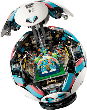Inuti LEGO-fotbollen finns en integrerad mikroarena som tillför ett lekfullt och oväntat inslag. Genom att trycka på en knapp aktiveras en rörlig segerscen där små fotbollsspelare firar, samtidigt som fyrverkerier avfyras bakom dem. Arenan innehåller även detaljer som storbildsskärmar och en guldtrofé, vilket ger extra djup för den som vill utforska modellen bortom dess yttre form.