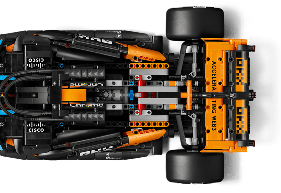 LEGO Technic McLaren MCL39 F1 bil är utrustad med fungerande styrning samt push- och pull-rod-fjädring som efterliknar konstruktionen i en riktig Formel 1-bil. Den integrerade differentialen och den 2-växlade växellådan ger en teknisk inblick i hur kraftöverföringen fungerar i ett högpresterande tävlingsfordon.