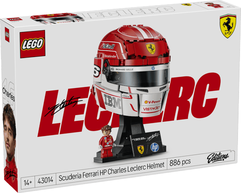 LEGO Editions Scuderia Ferrari HP Charles Leclerc hjälm (43014) är ett byggset framtaget för tonåringar och vuxna fans av Formula 1. Modellen återskapar Charles Leclercs ikoniska Ferrari-hjälm i LEGO-klossar och kombinerar samlarvärde med ett tekniskt och engagerande byggprojekt. Med totalt 886 delar får byggaren steg för steg konstruera en displaymodell inspirerad av en av sportens mest välkända förare.