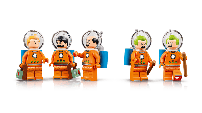 Setet innehåller totalt sex karaktärer från Tintin-universumet. Samtliga minifigurer är utrustade med rymddräkter, hjälmar och syretankar för att matcha seriens månskildring.