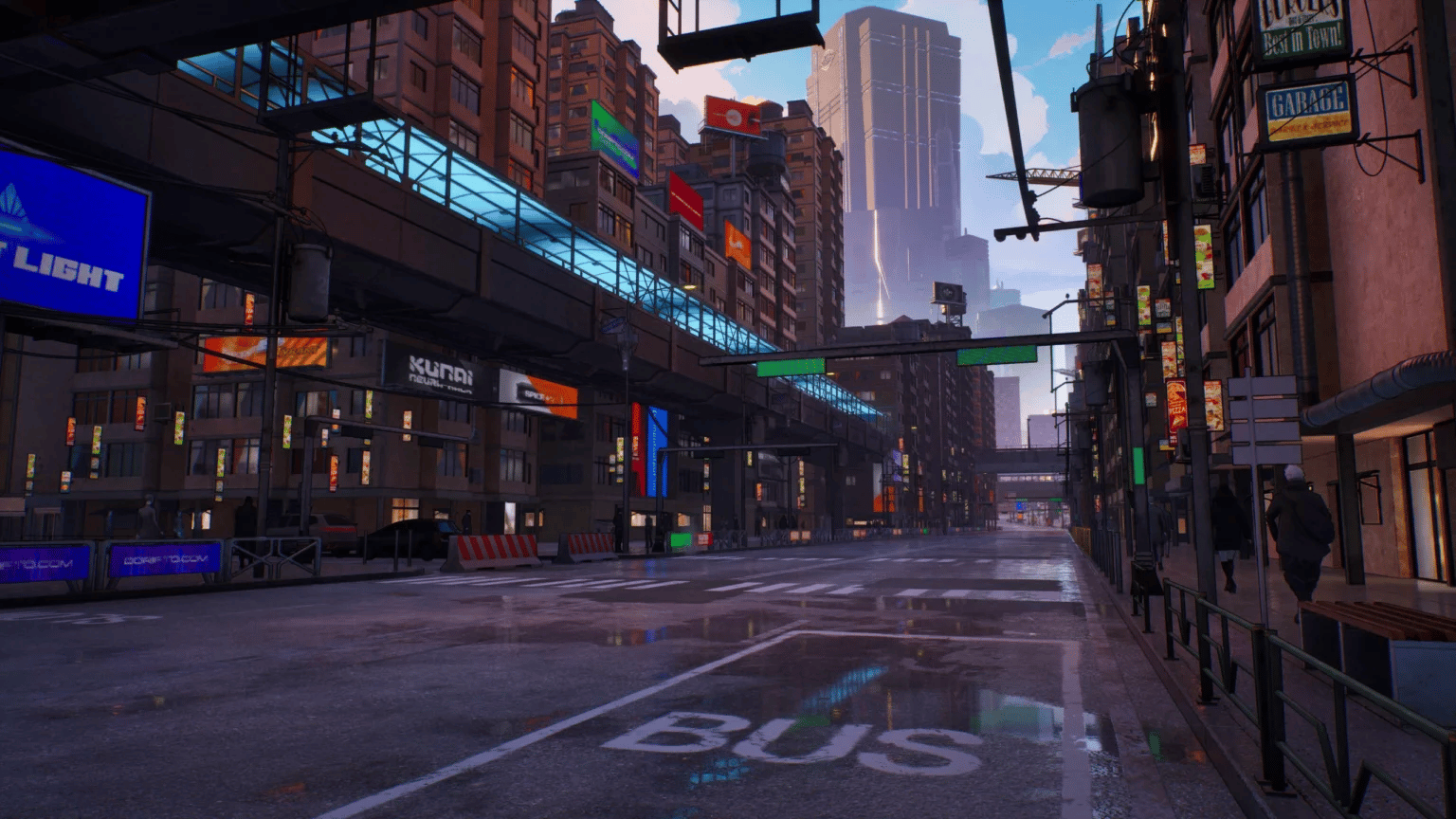 Screamer utspelar sig i en visuellt slående, dystopisk värld med tydliga kontraster. I Neo Rey möts bländande futurism och brutal betong, där stadens neonupplysta gator döljer ett samhälle i förfall. Söder om staden väntar Sky Road Desert, ett skoningslöst ökenområde där svarta sandar, vind och ruiner gör varje misstag ödesdigert. Forest #13 erbjuder en helt annan utmaning – täta skogar, smala passager och hög fart där instinkt är viktigare än marginaler.