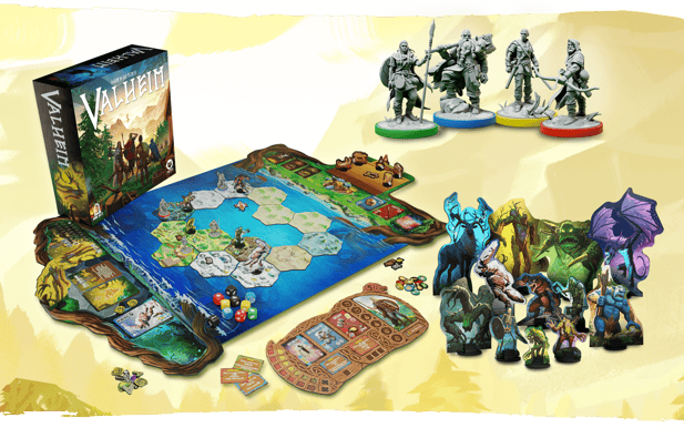 I Valheim: The Board Game samarbetar du och dina medspelare som vikingar i en tuff och mytisk värld. Ni måste samla resurser, bygga upp ert hem och förbereda er på farorna som lurar i skogar, berg och träsk.