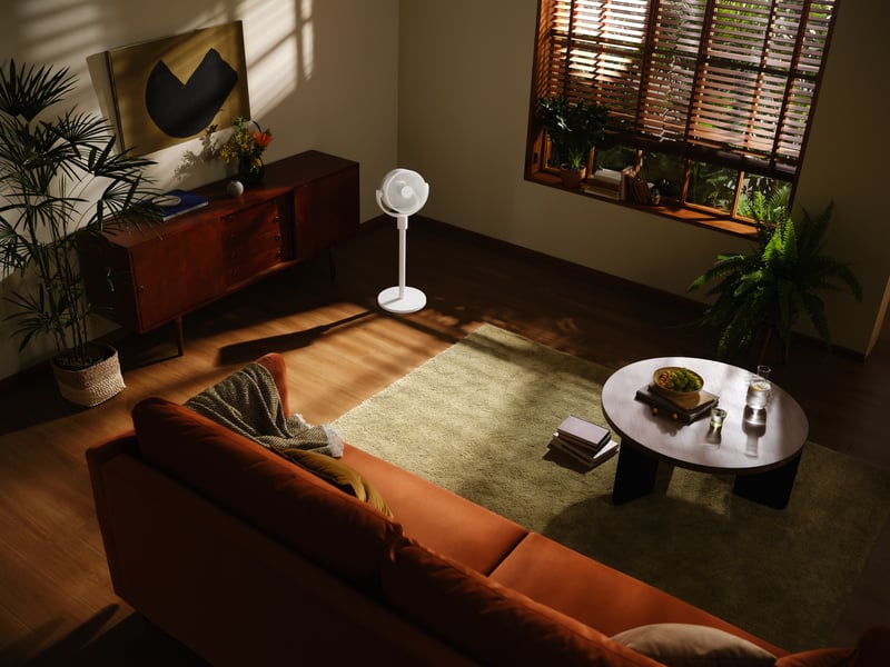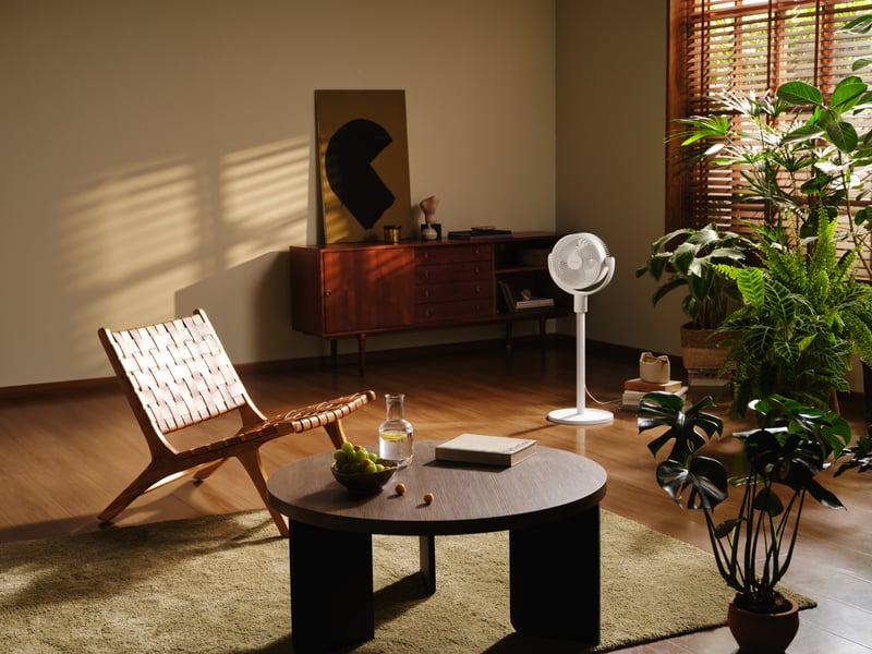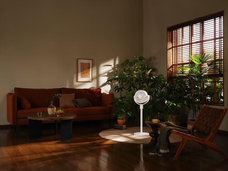 Kombinationen av lång räckvidd och bred spridning gör att fläkten inte enbart kyler en punkt, utan aktivt cirkulerar luftmassan i rummet.