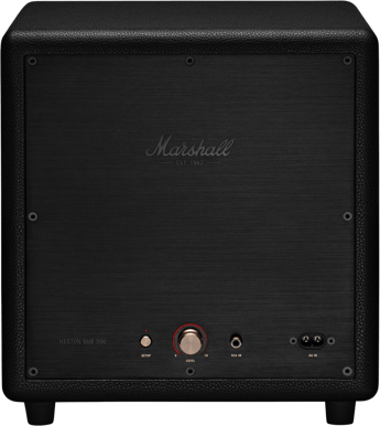 Klassisk Marshall-stil möter modern prestanda. Med sin diskreta svarta finish och karakteristiska detaljer smälter denna subwoofer sömlöst in i ditt vardagsrum samtidigt som den gör ett starkt designmässigt intryck.