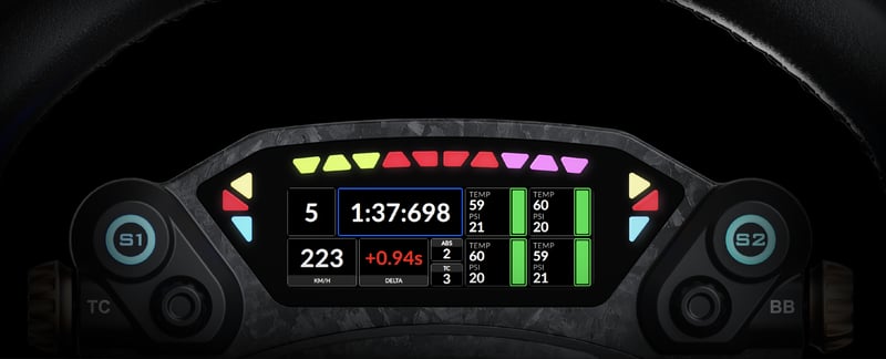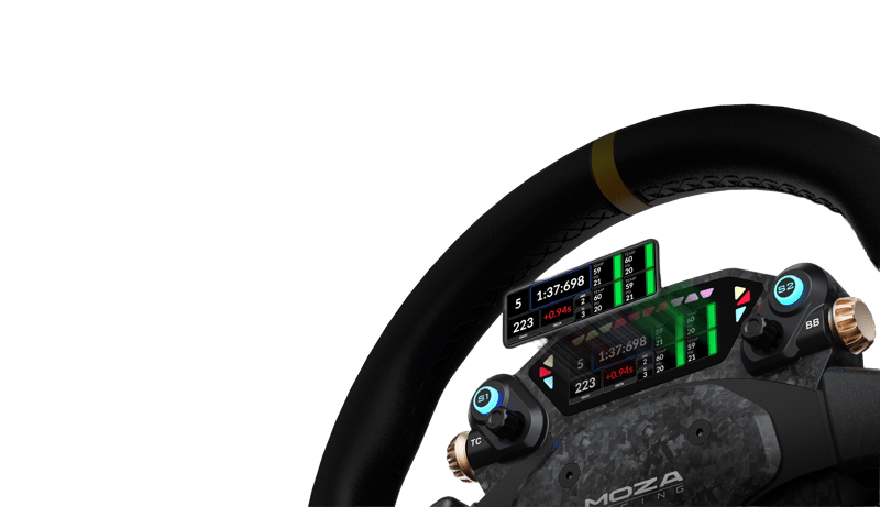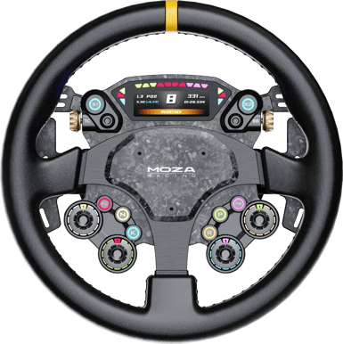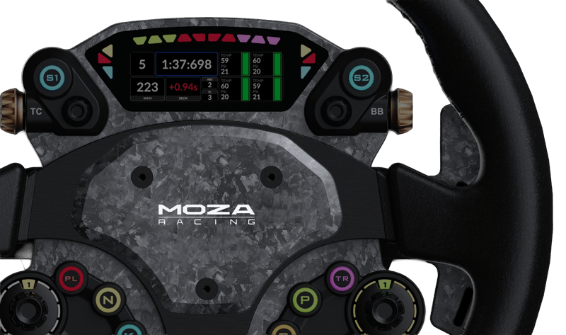I centrum sitter en 2,99-tums högupplöst display med 60 Hz uppdateringsfrekvens och tydlig återgivning av telemetridata. Via MOZA Pit House kan användaren skapa egna dashboards, justera layout och dela eller importera färdiga UI-profiler. Det gör MOZA CS Pro Wheel lämplig för flera discipliner, från GT och formelbilar till mer avancerade moddade simuleringar.