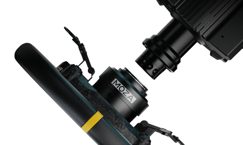 Ratten använder ett helaluminium quick release-system inspirerat av verklig motorsport, vilket möjliggör snabba och stabila rattbyten. MOZA CS Pro Wheel är kompatibel med samtliga MOZA-baser som säljs idag och kan även anslutas till tredjeparts wheelbases via MOZA hub kit. Kommunikation sker via kabel genom en ledande slip ring för pålitlig signalöverföring även vid intensiv användning.