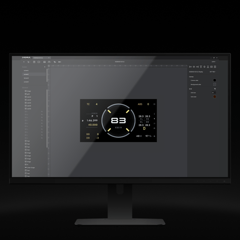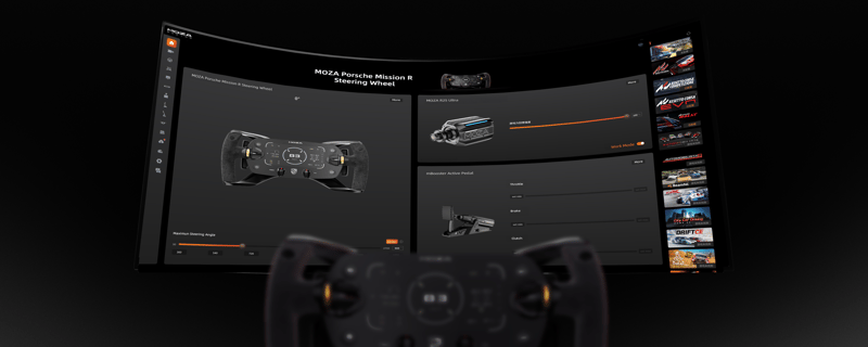 MOZA Porsche Mission R Simracing Steering Wheel använder MOZA:s egna UI-system för displayen, med över tio förinställda layouter och möjlighet till djupgående anpassning. En fyrkärnig processor på 1,3 GHz hanterar realtidsrendering utan märkbar fördröjning. Via MOZA Pit House kan användaren justera grafik, RPM-indikatorer, färger och funktionslogik för olika simulatorer.