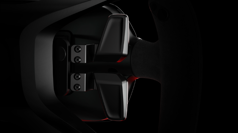 Bakom ratten sitter CNC-frästa magnetiska växelpaddlar i aluminium med hall-sensorer och 0,03 mm precision. De dubbla kopplingspaddlarna kan växlas mellan enkel- och dubbelkopplingsläge, vilket är särskilt användbart i exempelvis iRacing och F1-serien. Förmonterade dämpkuddar reducerar mekaniskt ljud utan att påverka responsen.