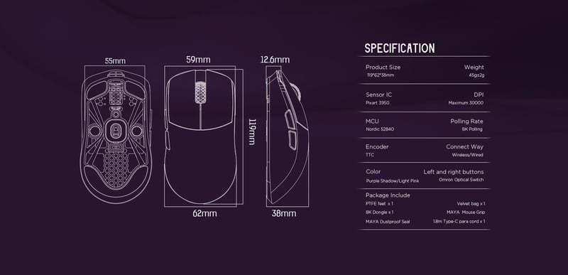 Lamzu Maya Champions Edition - 8K Dongle, Optical switch - Purple Shadow (Small size)