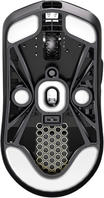 Den integrerade Nordic nRF52840-mikrokontrollern säkerställer stabil trådlös anslutning och effektiv strömhantering. Musen kan även användas via USB-C-kabel för laddning eller trådbundet spel.