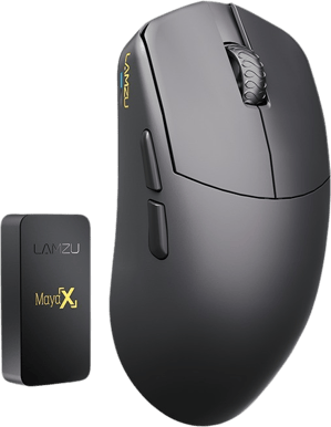 Lamzu Maya X är en trådlös gamingmus utvecklad för e-sport och FPS-spel där låg vikt, hög polling-rate och exakt sensorprestanda är avgörande. Med en vikt på cirka 47 gram kombinerar den superlight-design med större format än standardmodellen Maya, vilket gör den särskilt lämpad för medel till stora händer.