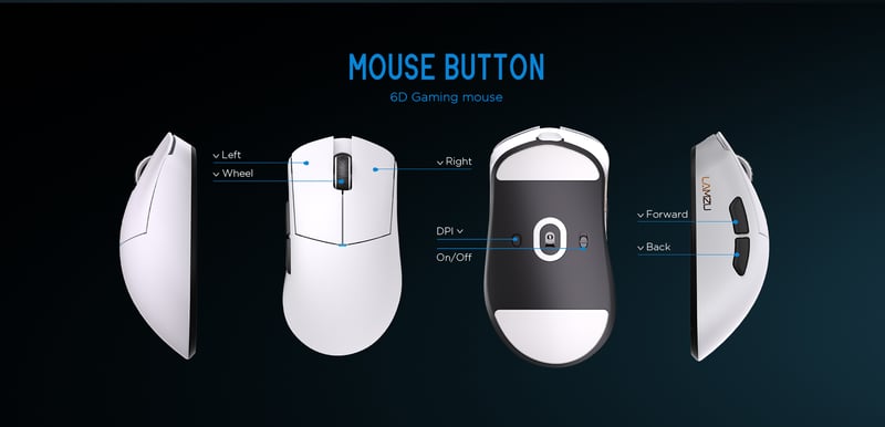 Musen är utrustad med optiska Omron-switchar som registrerar klick utan traditionell mekanisk debounce. Det ger snabb aktivering och lång hållbarhet, särskilt vid intensiv användning i tävlingsspel. Antalet knappar ligger på 5–6 beroende på konfiguration, inklusive sidoknappar och rullhjul.