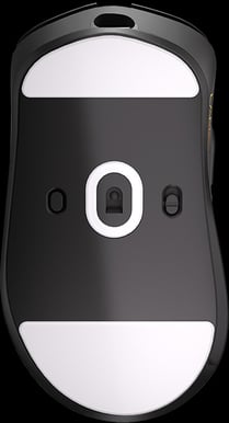 PTFE-musfötterna ger låg friktion och jämnt glid på både tyg- och hårda musmattor. Extra fötter medföljer för att förlänga livslängden. Byggkvaliteten är fokuserad på låg vikt utan att kompromissa med strukturell stabilitet.