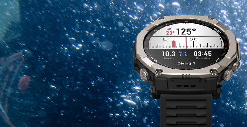 Med upp till 30 dagars batteritid är T-Rex Ultra 2 redo för långa expeditioner. Den är vattentät till 10 ATM och klarar dyk ned till 45 meter. Klockan fungerar även i extrem kyla ner till –30 °C och erbjuder träningslägen, uppkoppling via Bluetooth och analys via Zepp-appen.