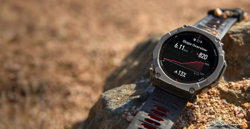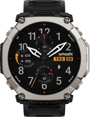 T-Rex Ultra 2 är byggd för extrema miljöer där utrustning inte får svika. Boetten i 51 mm titan av klass 5 och safirglas står emot kyla, värme, stötar och snabbt skiftande väder. Den ljusstarka 1,5" AMOLED-skärmen gör att informationen förblir tydlig även i starkt solljus.