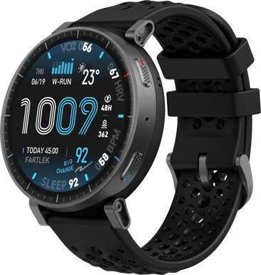 Den stora 1,5 tum AMOLED-skärmen ger tydlig och lättläst information i alla miljöer – från gymmet till fjällen. Med en ljusstyrka på upp till 3000 nits förblir data, kartor och träningsinformation synliga även i starkt solljus. Den generösa skärmstorleken gör det enkelt att snabbt se statistik, navigering och notiser utan att behöva anstränga ögonen.