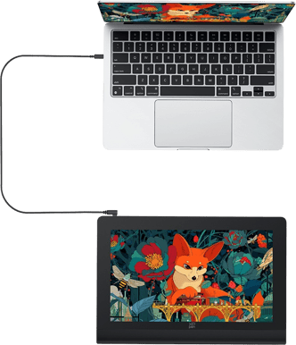 Den slimmade aluminiumkonstruktionen gör ritdisplayen enkel att ta med till studion, kontoret eller på resan. Den ansluts via USB-C och fungerar med Windows, macOS, Android, Linux och ChromeOS samt populära kreativa program som Photoshop, Illustrator, Blender och Clip Studio Paint.