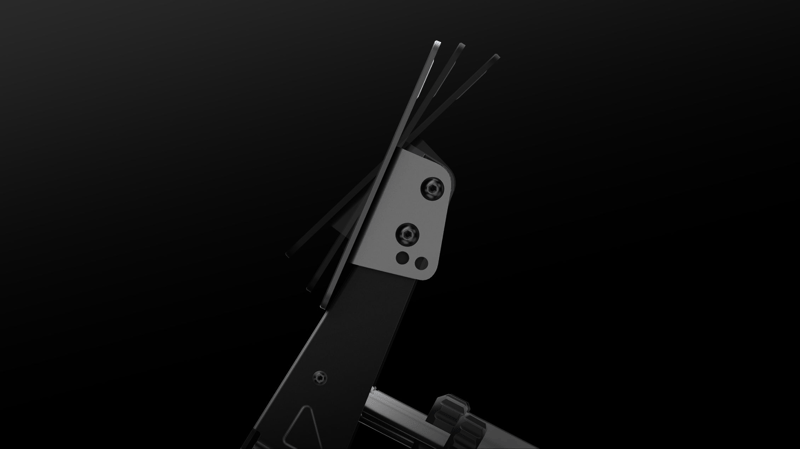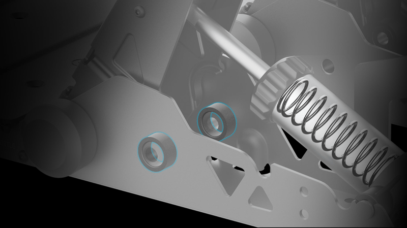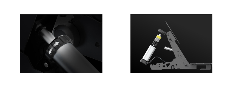Den interna mekaniken är designad för att minimera friktion och ljud. Polerade axlar och inkapslade komponenter ger en jämn rörelse, medan dämpning vid ändlägen reducerar ljudnivå. För skrivbordsbaserade riggar finns även möjlighet att komplettera med väggstöd för ökad stabilitet.