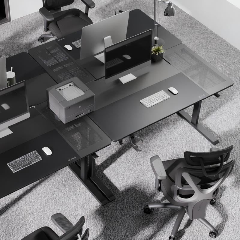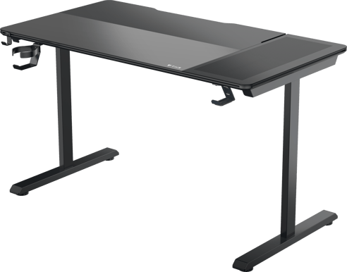 Skrivbordet har en dedikerad yta i härdat glas som fungerar som musmatta direkt på bordsskivan. Den släta glasytan ger konsekvent och exakt sensoravläsning, vilket är särskilt viktigt för gaming med hög precision eller arbete som kräver noggrann pekarkontroll.