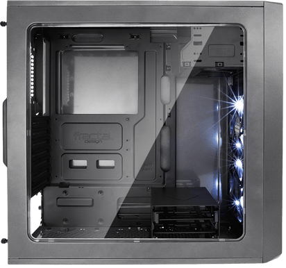 Focus G har plats för 165mm höga luftkylare, 380mm grafikkort, 230mm nätaggregat, upp till 6st fläktar (varav det medföljer 2st 120mm LED-fläktar), upp till 3st 2.5" respektive 2st 3.5" hårddiskar (vibrationsdämpande burar) samt två stycken 5.25" enheter.