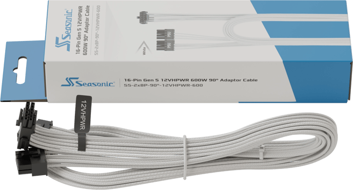 Kabeln är 750 mm lång och kompatibel med utvalda Seasonic-nätaggregat från 650 W och uppåt som har två lediga PCIe-kontakter.