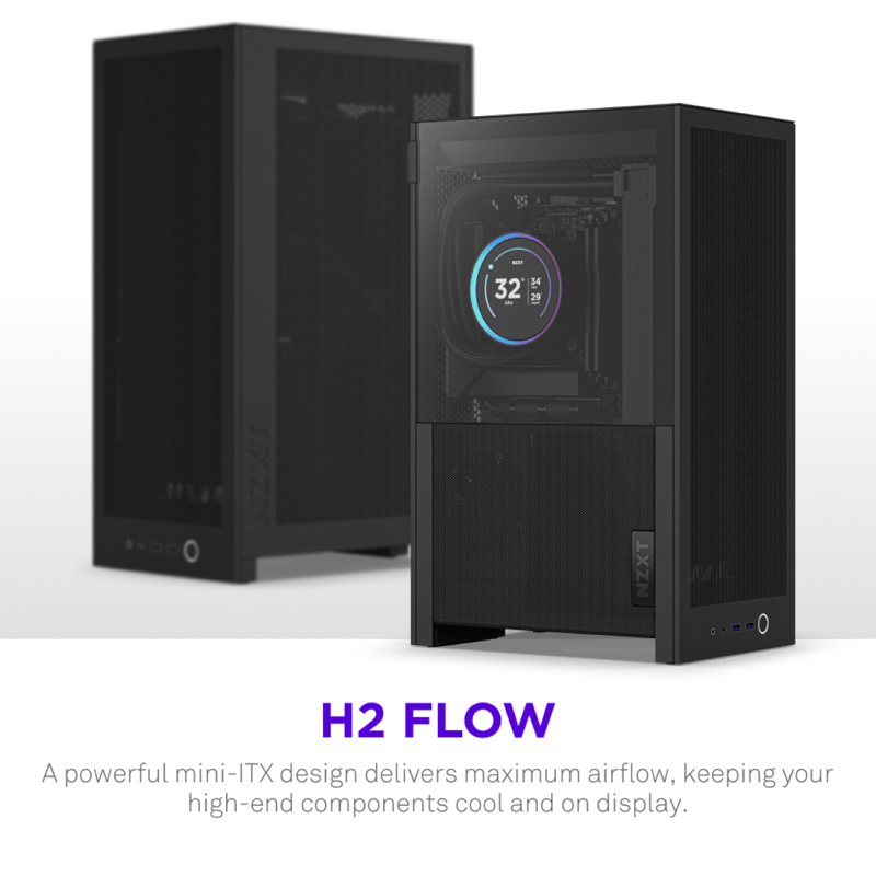 Med inkluderad PCIe 5.0-riser och två förinstallerade 120 mm-fläktar är H2 Flow redo för högpresterande SFF-byggen.