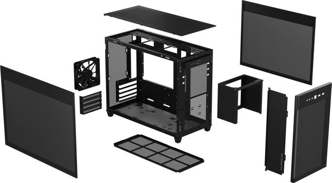 Verktygsfria sidopaneler med ett filter ger också enkel åtkomst och förbättrat luftflöde, och de fullbordar en smakfull, minimalistisk estetik som kan vara mittpunkten i varje DIY-datorbygge.