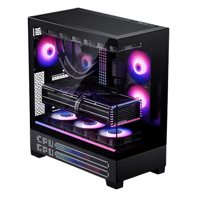 With new hardware releases demanding more cooling capacity and internal space,the XT-View is designed to deliver just that. And it delivers with extremely good value.The length and width of the chassis easily fit even the largest graphics cards with space to spare for cable management. Cooling has been optimized with up to 9 fanlocations and dedicated radiator space in the top of the chassis. The XT View further innovates to bring support for the lastest mainboards that host hidden connectors at the rear to unlock that zero-cable setup. The graphics card also benefits from 3x 120 mm fan locations on the midplate that provides direct cooling.