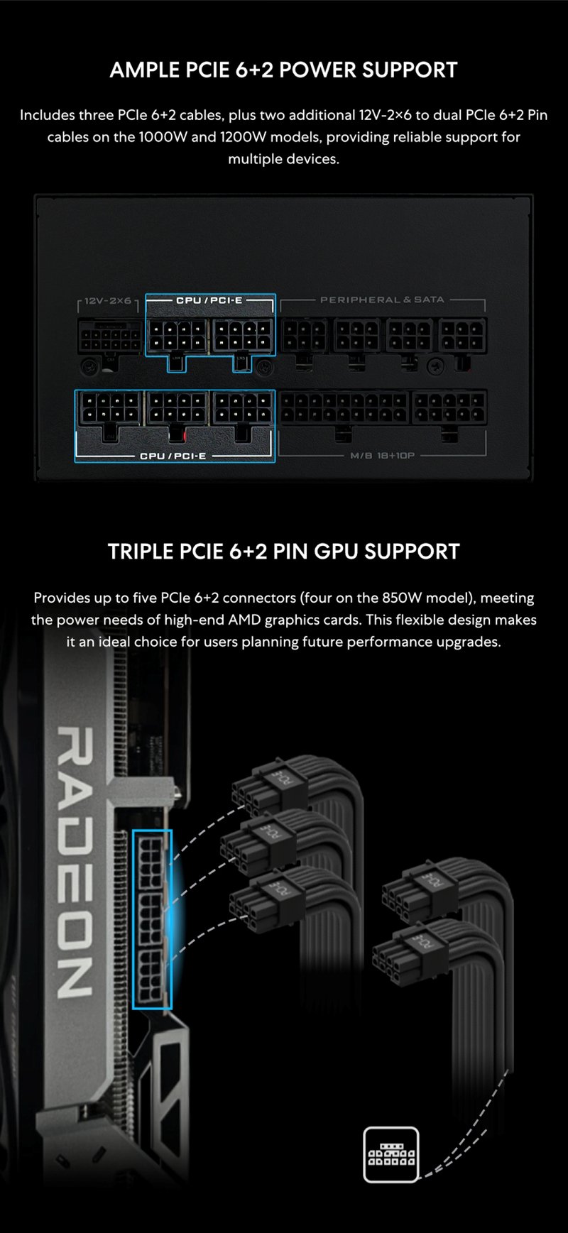 - 1 st 6+2-pin, 1 st 12+4-pin, 2 st 8-pin